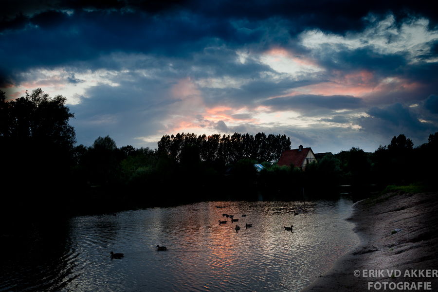 De avondschemering bij natuurgebied De Genneper Parken in Eindhoven. Eindhoven, 8 augustus 2011.